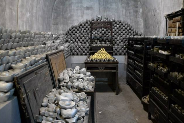 在钱庄地下有很大的金库,现在还可以进去看到大量的金银,当然是仿制的,还可以在这里体验到金库兑换元宝的过程。