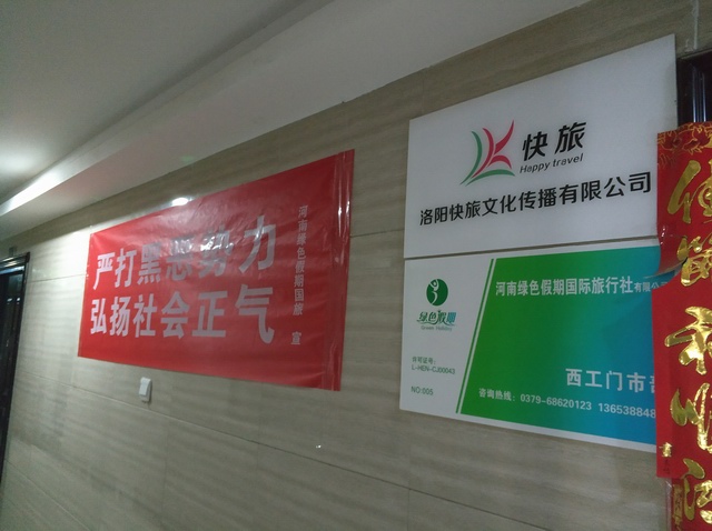 地 址:洛阳市西工区王城大道升龙广场C区2号楼(17栋)636室河南绿色假期国际旅行社西工门市部。