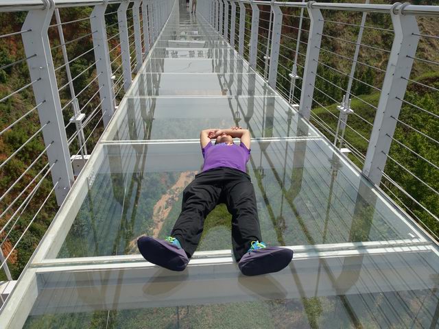 站在一块悬空的玻璃桥上,脚下就是深谷,看一眼就不自觉的有种心惊肉跳的感觉。