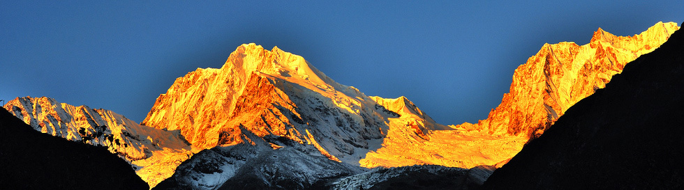 | 雪 山 海螺沟地处横断山系的核心地带,境内延绵着众多终年积雪、冰清玉洁的雪山。贡嘎山以雄浑的身躯屹立于香格里拉腹地,海拔7556米,被誉为“山中之王”,为横断山系的主峰,周围林立着45座海拔6000米以上、100余座海拔5000米以上的冰峰、雪山,是世界上距离大城市近的极高山群。极目远眺,群峰簇拥,贡嘎山主峰宛如一座巨大的金字塔,巍峨地屹立于群峰之巅,高大险峻、气势磅礴。 |