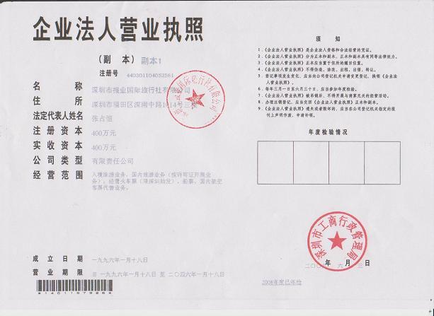 深圳市报春国际旅游集团有限公司(原深圳市报业国际旅行社有限公司)成立于1996年1月18日,是深圳特区报业集团投资组建的旅行社,经营许可证编号L-GD-GD00234并交足全额旅游质量保证金。