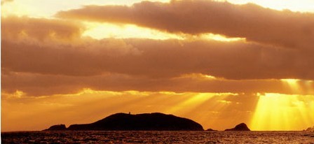 第一景:莲洋午渡。莲花洋是坐船前往普陀山旅游的必经之路,慧谔大师船载观音圣像东渡日本,遇到铁莲花的地方就是这里。午潮时候,这里的波浪上下翻滚,形似莲花。