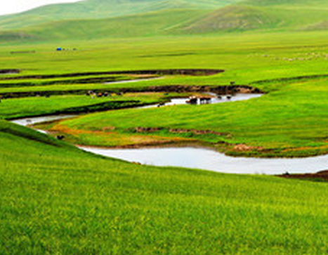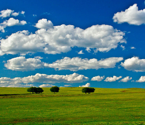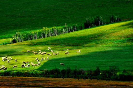 呼伦贝尔草原是内蒙古草原风光最为绚丽的地方,拥有一亿多亩草场,两亿多亩森林,500多个湖泊,3000多条河流,辽阔无边的大草原像是一块天工织就的绿色巨毯,步行其上,那种柔软而富于弹性的感觉非常美妙。