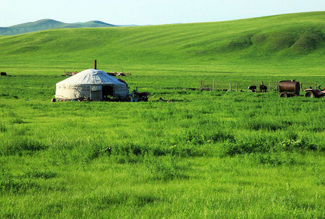 穿行在呼伦贝尔,定会为那“千里草园铺翡翠”的景象而惊叹。每逢盛夏,草原上鸟语花香、空气清新,星星点点的蒙古包上升起缕缕炊烟,微风吹来,牧草飘动,处处“风吹草低见牛羊”。