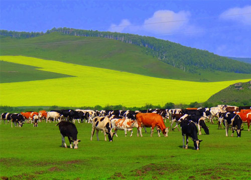 而绿草与蓝天相接处,牛羊相互追逐,牧人举鞭歌唱,处处都是“风吹草低见牛羊”的景致,将它誉为世界上最美、、最没有污染的几大草原之一,真是当之无愧。